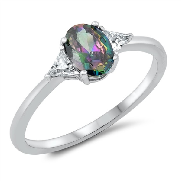 Créateur : Silver Design Bague en Argent 925 ornée d'un Zirconium Topaze Mystique Taille ovale Zirconiums sur les cotés Finition en rhodium