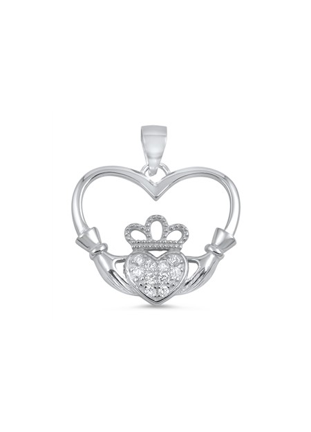 Créateur : Silver Design Pendentif en argent 925 Claddagh Pendentif orné de fins zirconiums Pendentif à associer avec une jolie chaîne