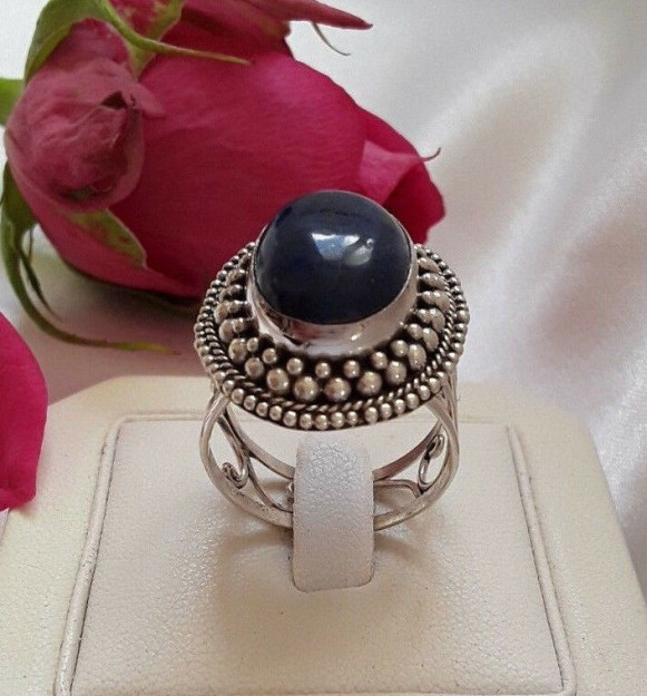 Créateur : Miss Agathe Bague en ARGENT MASSIF sertissage clos d' une Pierre fine en Lapis Lazuli Taille ovale Travail ouvragé de Fleurs - Finition Antique oxydée Bague ultra-féminine pour une belle note de style à votre lookTAILLE : 57