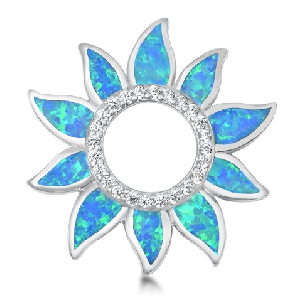 Créateur : Silver DesignPendentif en argent 925 représentant une fleur Pendentif orné d'Opale bleue avec un sertissage de fins zirconiums