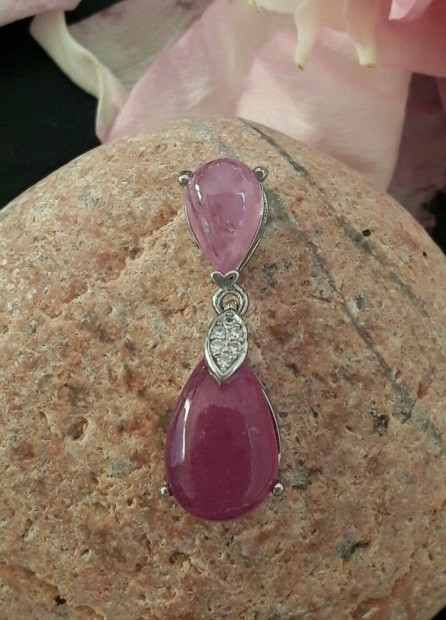 Pendentif en Argent 925 serti à griffes de 2 Rubis en cabochon Taille Goutte