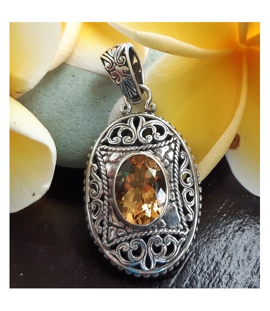 Pendentif orné d'une Citrine Ovale à facettes