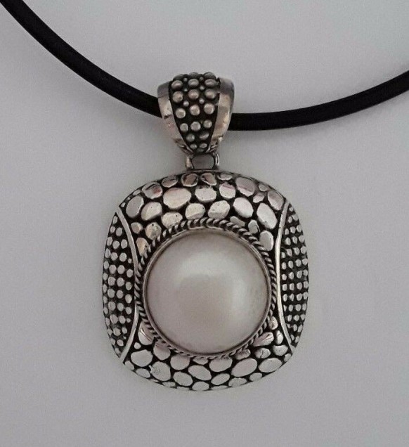 Pendentif en Argent Massif finement ouvragé orné d'une Perle ronde