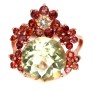 Bague finement ouvragée de Grenats disposés en Fleurs réhaussée d'une Topaze Bleue ronde