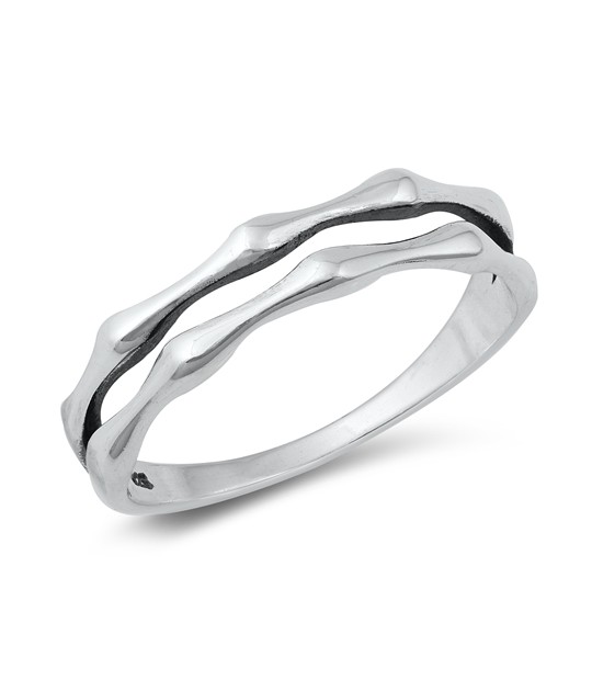 Bague anneau en Argent 925 ouvragé en Bambou